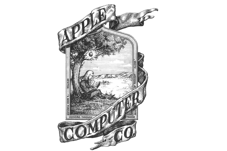Sebelum logo apel tergigit yang terkenal itu digunakan, Apple sempat memakai logo awal yang sangat berbeda. Logo pertama Apple menampilkan sosok ilmuwan besar Sir Isaac Newton yang digambarkan sedang duduk di bawah pohon apel. Desainnya hitam-putih (monokrom) dengan latar pemandangan alam. Di bagian atas tampak buah apel yang seolah jatuh, dilingkari cahaya terang, menggambarkan momen “inspirasi” lahirnya teori gravitasi.