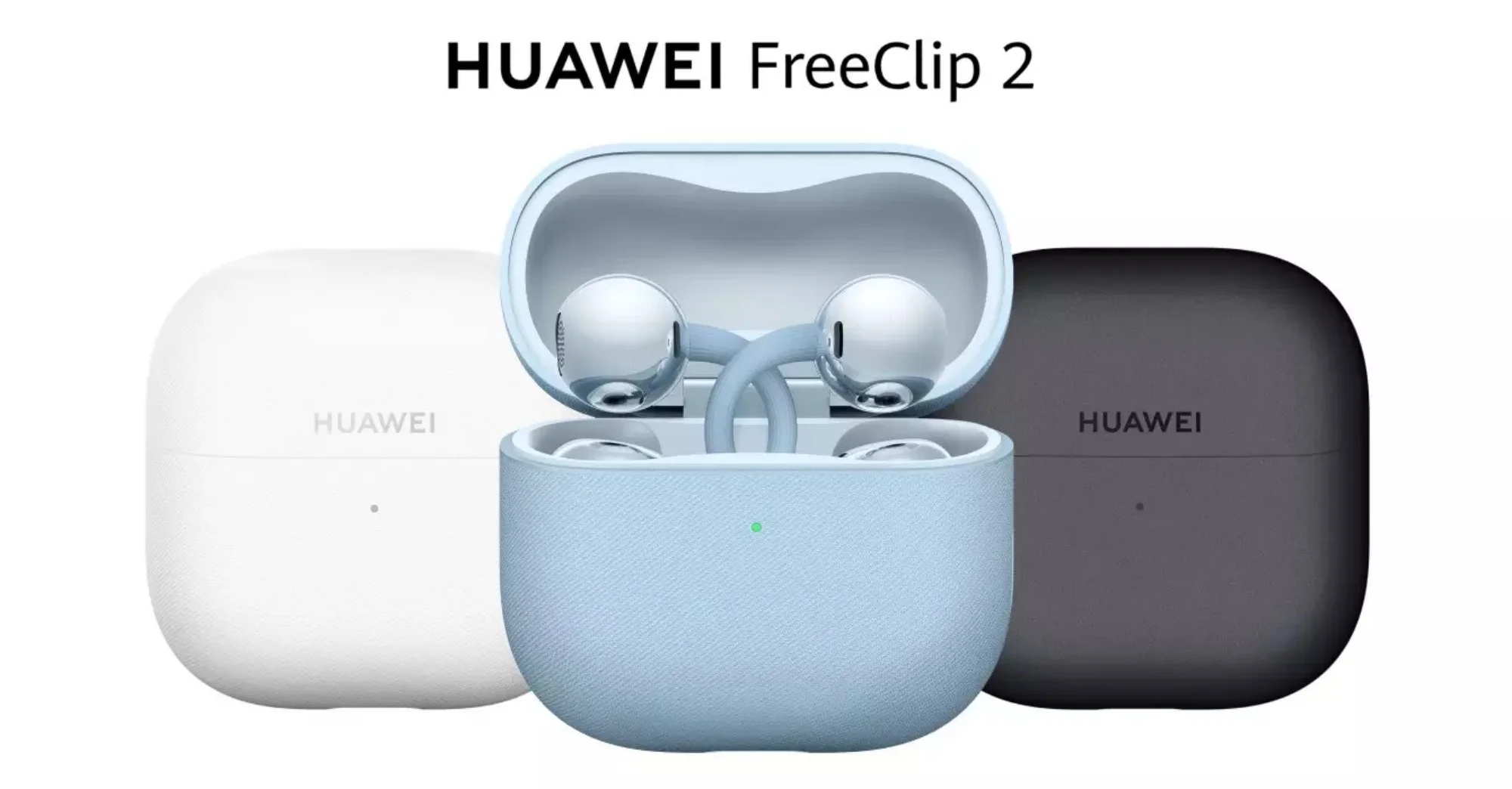 Huawei FreeClip 2 hadir dalam tiga pilihan warna, dengan Denim Blue sebagai varian andalan. Buat yang lebih suka tampilan kalem, tersedia juga Feather White dan Modern Black. Menariknya, versi biru dan putih dibekali finishing bertekstur silikon, sedangkan varian hitam tampil lebih sederhana tanpa tekstur.