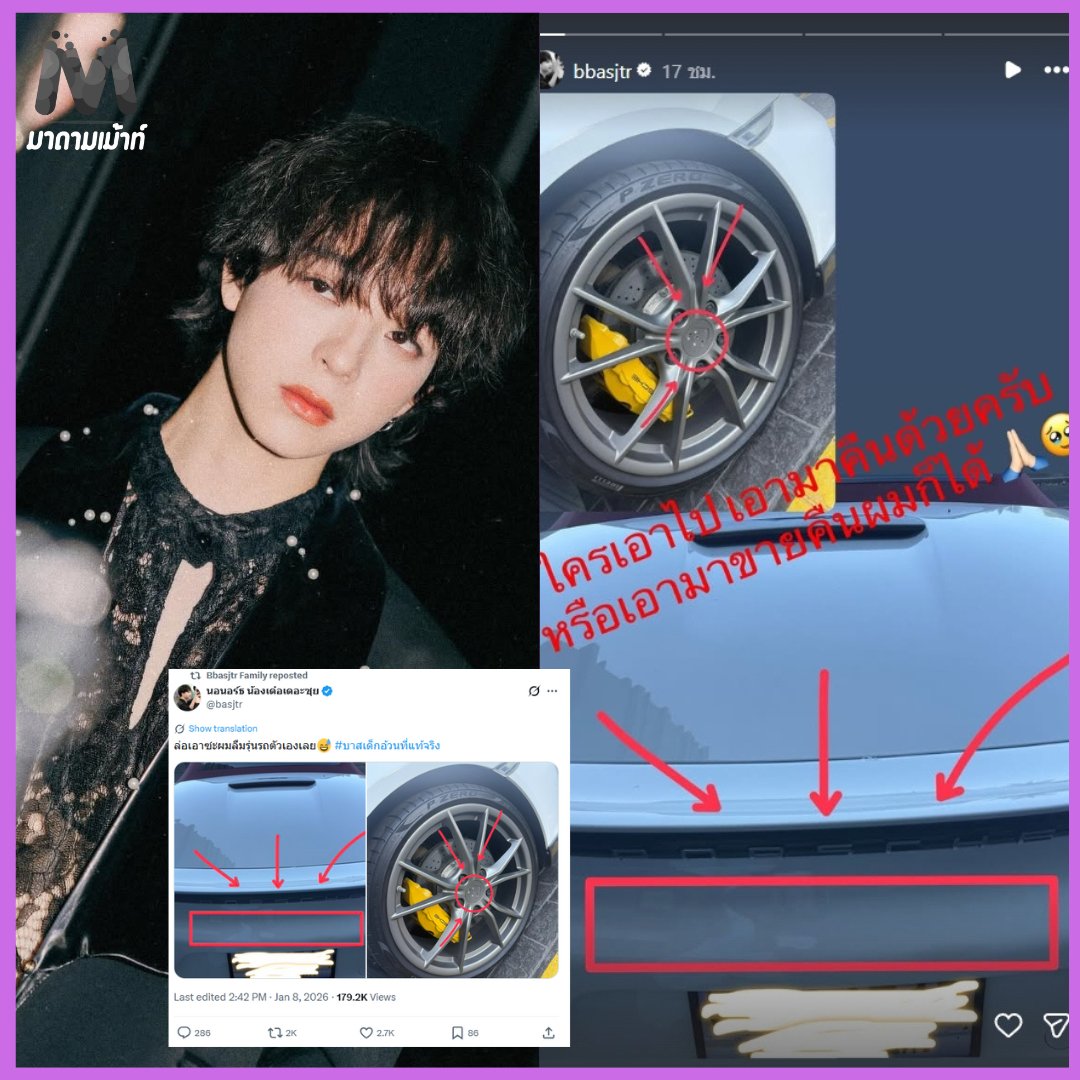 Kabar kurang menyenangkan kembali datang dari dunia hiburan Thailand. Bas Hatsanat membagikan cerita lewat media sosial bahwa sejumlah aksesori pada mobil Porsche miliknya hilang dicuri. Barang yang raib disebut berupa logo model mobil yang terpasang di bagian belakang kendaraan serta di area roda.