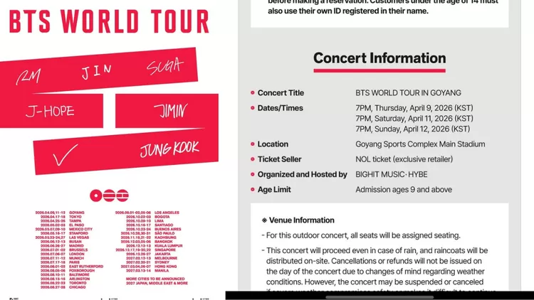 Pengumuman tersebut dirilis pada 13 Januari 2026 pukul 22.00 WIB (atau 14 Januari 2026 pukul 00.00 KST) dan langsung menyulut antusiasme besar dari ARMY di berbagai negara.